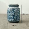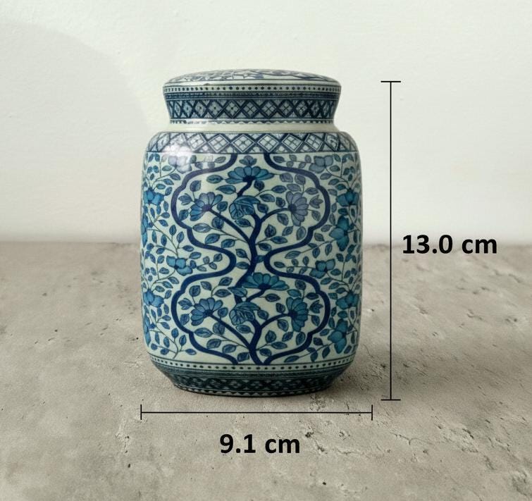 The timeless blue and white pottery style adds a sophisticated charm to any room. Its compact yet practical size makes it ideal for displaying on shelves, mantels, kitchen counters, or dining tables. Whether used for storage or purely as decoration, this painted ceramic jar offers both functionality and elegance.