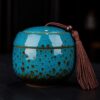Add elegance and function to your kitchen or tea corner with this beautifully glazed blue ceramic tea jar. Crafted in a traditional Chinese pottery style, this sealed porcelain container is ideal for storing loose leaf tea, herbal blends, coffee grounds, Matcha, spices, or small keepsakes.