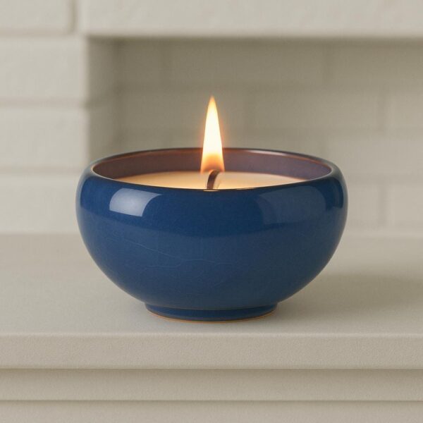 🕯️ Small Colourful Navy Blue Ceramic Candle Pots – Reusable Candle Holder / Tea Bowl / Wax Vessel