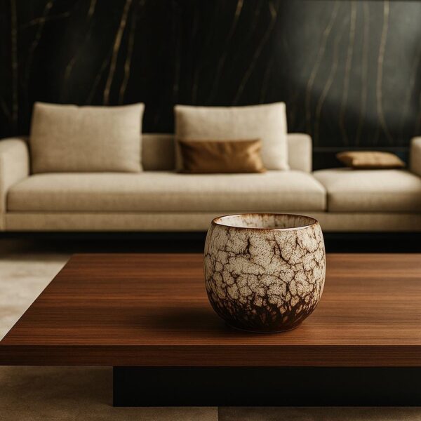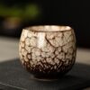 Add timeless character to your space with this speckled ceramic tea cup, designed in the spirit of Japanese wabi-sabi aesthetics. Featuring a beautifully marbled cream and brown glaze, this cup brings a rustic, organic feel to your Chinese tea or coffee routine.