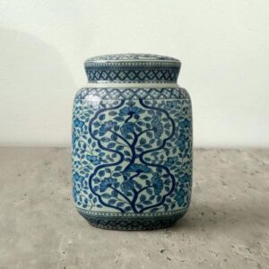 Blue and White Ceramic Jar with Lid Medium