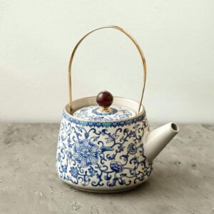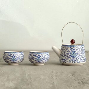 Blue and White Floral Teapot Set with Cups